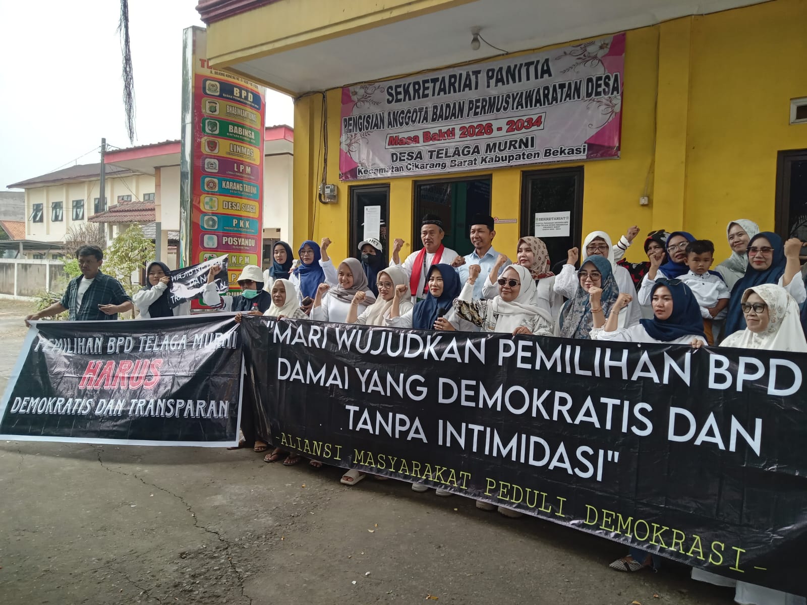BEKASI – Proses pengisian anggota Badan Permusyawaratan Desa (BPD) Telaga Murni, Cikarang Barat, periode 2026–2034 memicu gejolak. Sejumlah warga yang tergabung dalam Aliansi Masyarakat Peduli Demokrasi menggelar aksi massa menuntut transparansi total setelah mencium adanya indikasi “pengkondisian” pemilih yang mengarah pada praktik nepotisme.