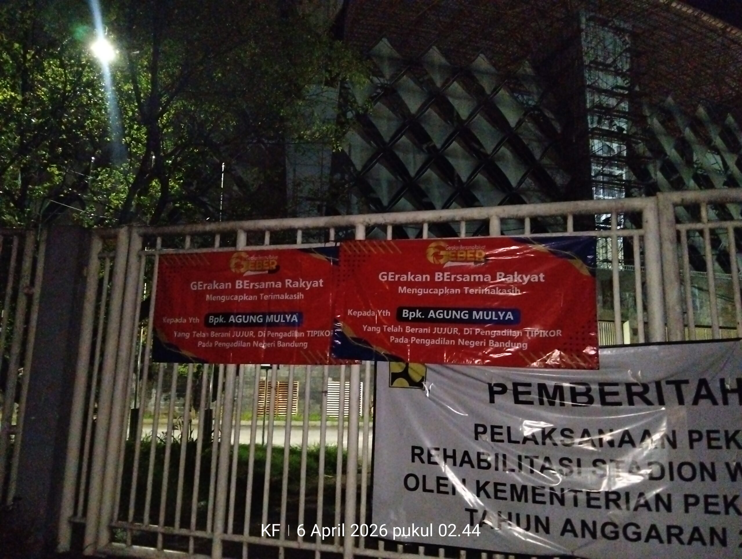 ​Pesan dalam spanduk tersebut tertuliskan “Gerakan Bersama Rakyat Mengucapkan Terimakasih Kepada Yth Bpk. AGUNG MULYA Yang Telah Berani JUJUR, Di Pengadilan TIPIKOR Pada Pengadilan Negeri Bandung.” ​ ​Aksi pemasangan spanduk ini merupakan bentuk dukungan moral terhadap keberanian Agung Mulya yang menjadi saksi dalam persidangan perkara dugaan korupsi “Ijon Proyek” APBD Kabupaten Bekasi di Pengadilan Tipikor Bandung. Dalam kesaksiannya, Agung secara terbuka mengakui adanya praktik fee 10 persen sebagai syarat mutlak dalam setiap kegiatan proyek di lingkungan Pemda Kabupaten Bekasi.