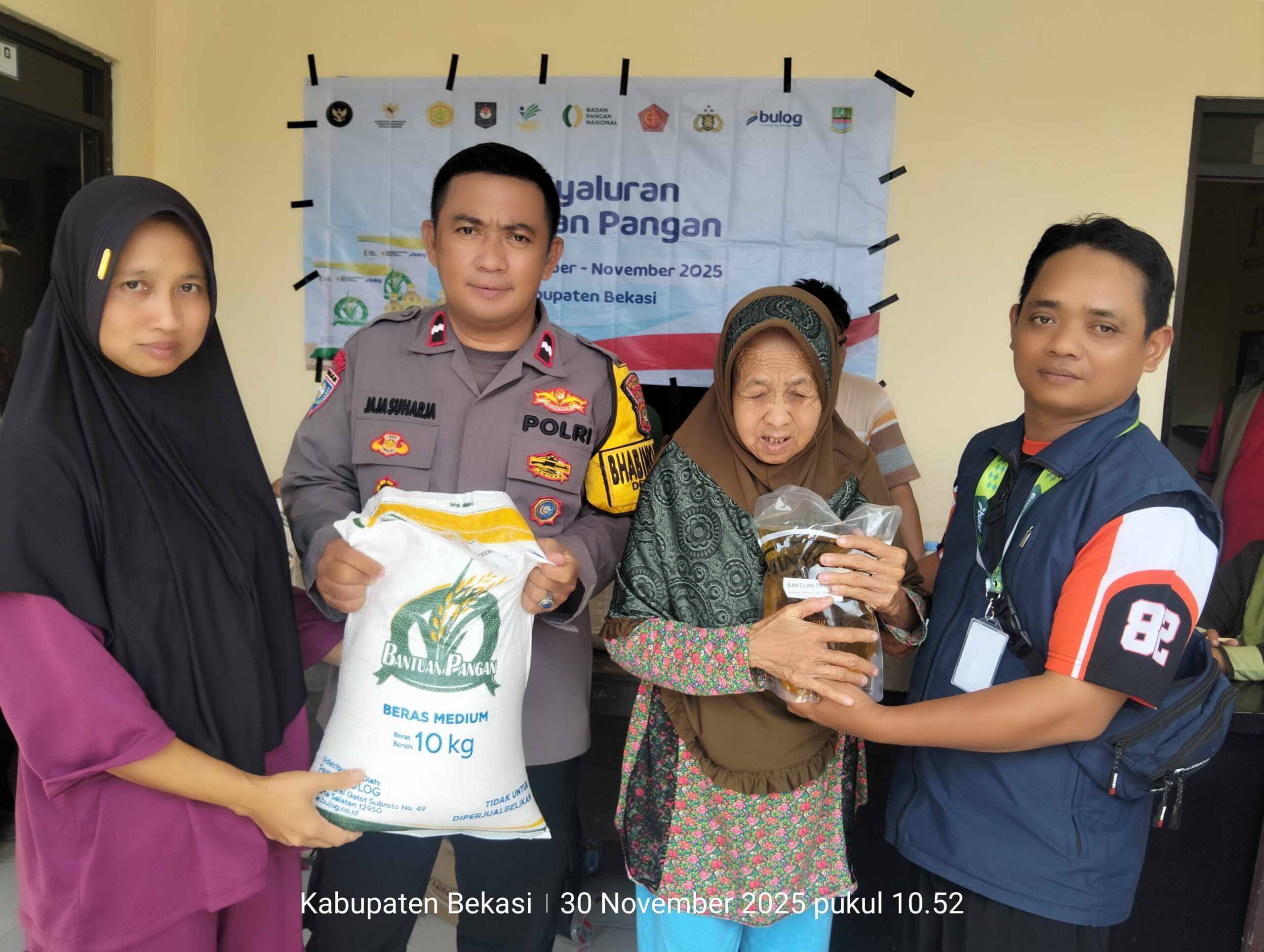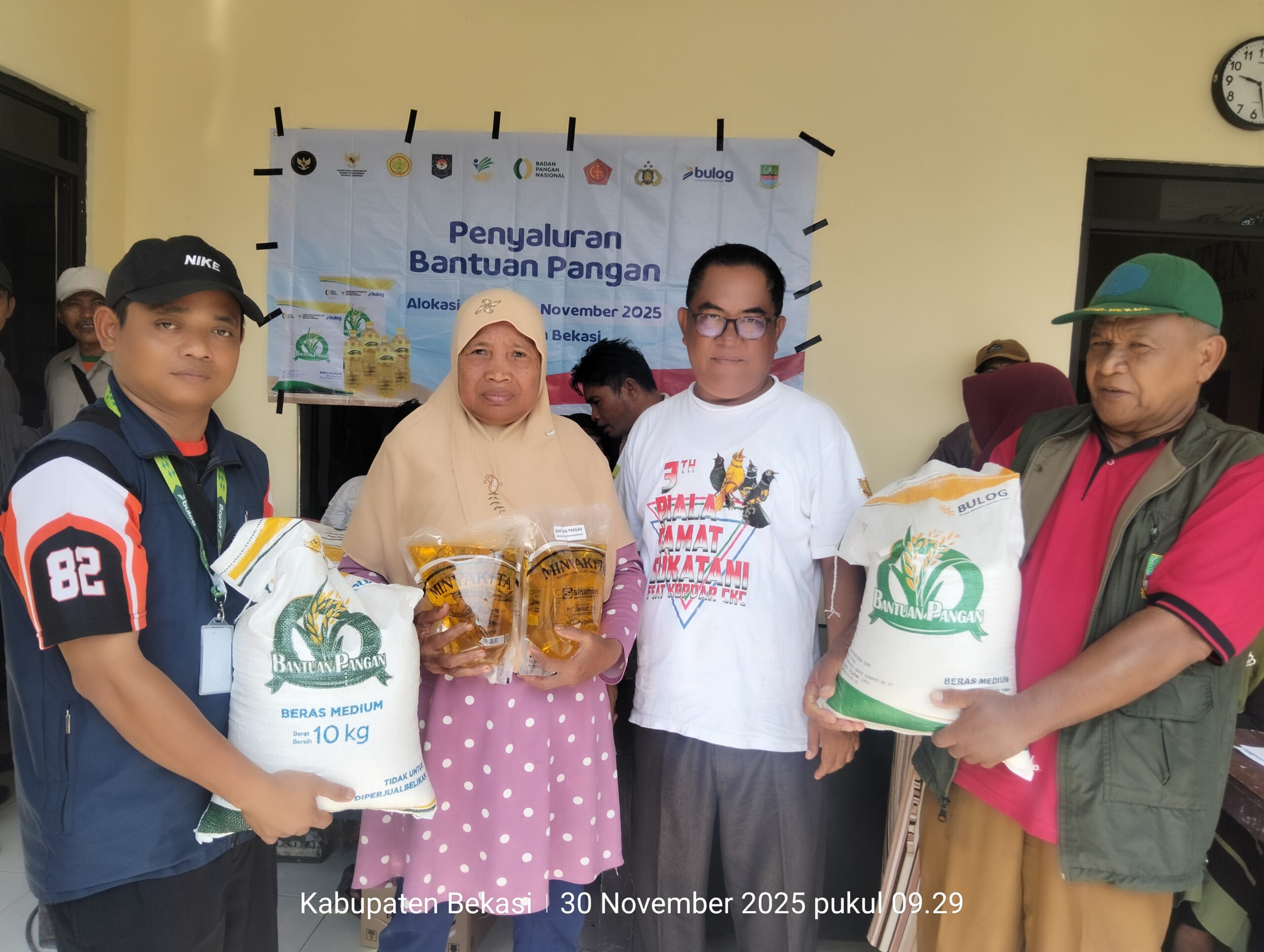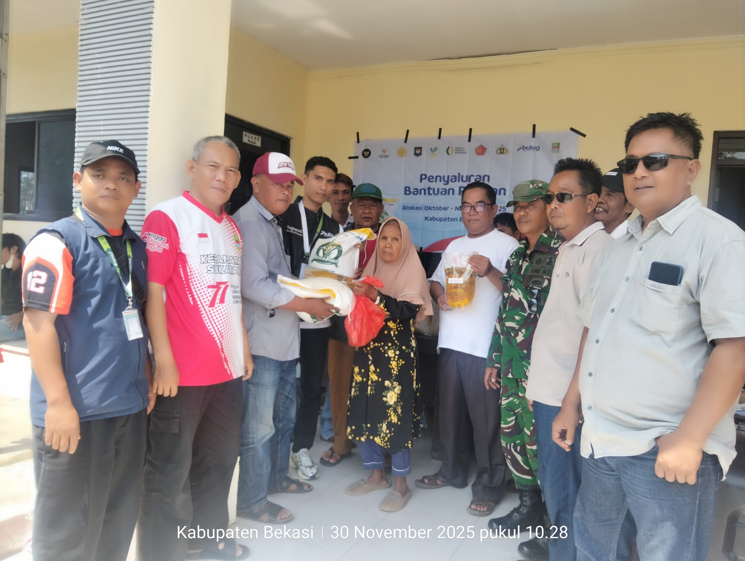 SUKATANI | Bekasihariini.com — Pemerintah Desa Sukaasih, Kecamatan Sukatani, menyalurkan bantuan pangan berupa beras dua karung sebanyak 20 kg dan minyak goreng 4 liter kepada 614 Keluarga Penerima Manfaat (KPM) pada Minggu (30/11/2025). Kegiatan berlangsung di aula kantor desa dan dipantau langsung oleh perangkat desa, Bhabinkamtibmas, Babinsa, serta Ketua Pekerja Sosial Masyarakat (PSM) desa dan juga dari pihak Bulog untuk memastikan penyaluran berjalan tertib dan tepat sasaran.