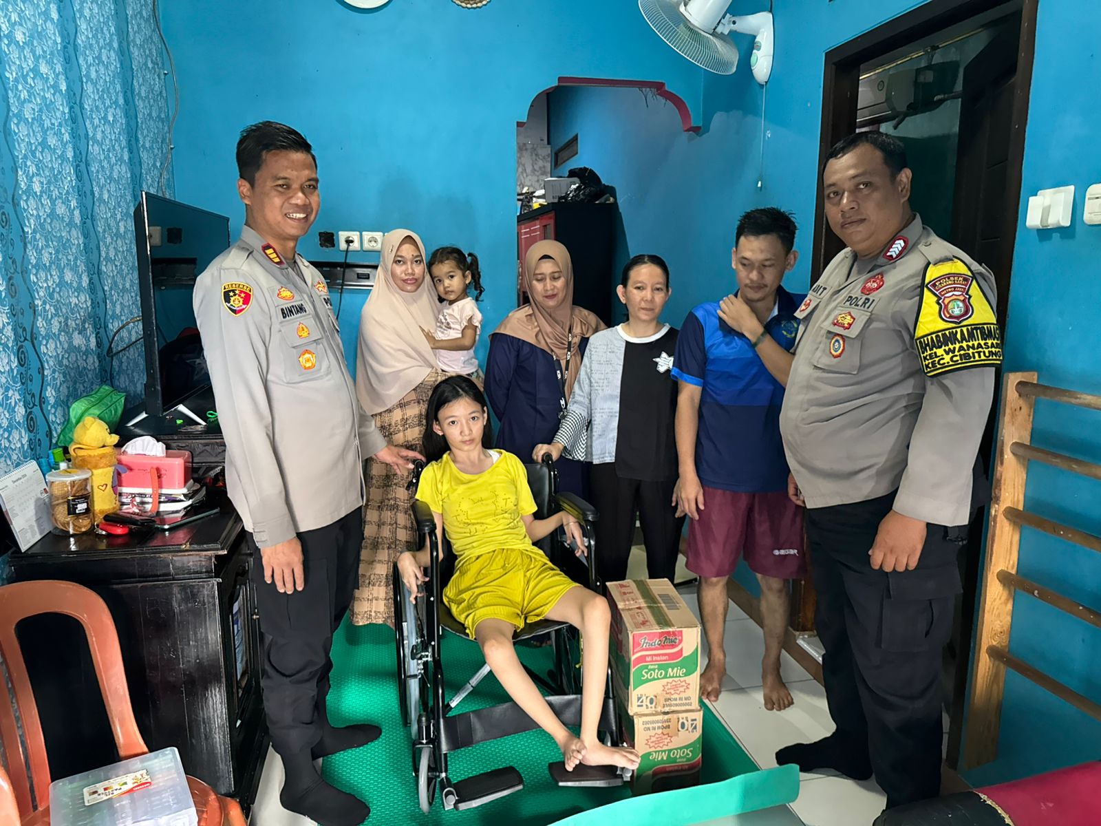 Kabupaten Bekasi, | BEKASIHARIINI.COM | – Kapolsek Cikarang Barat, AKP Tri Baskoro Bintang Wijaya, memberikan bantuan kursi roda dan sembako kepada penyandang disabilitas, Khairunisa Azzahra, 16 tahun, yang merupakan warga Perumahan Mustika Wanasari, Kelurahan Wanasari, Kecamatan Cibitung, Rabu (05/02/25).