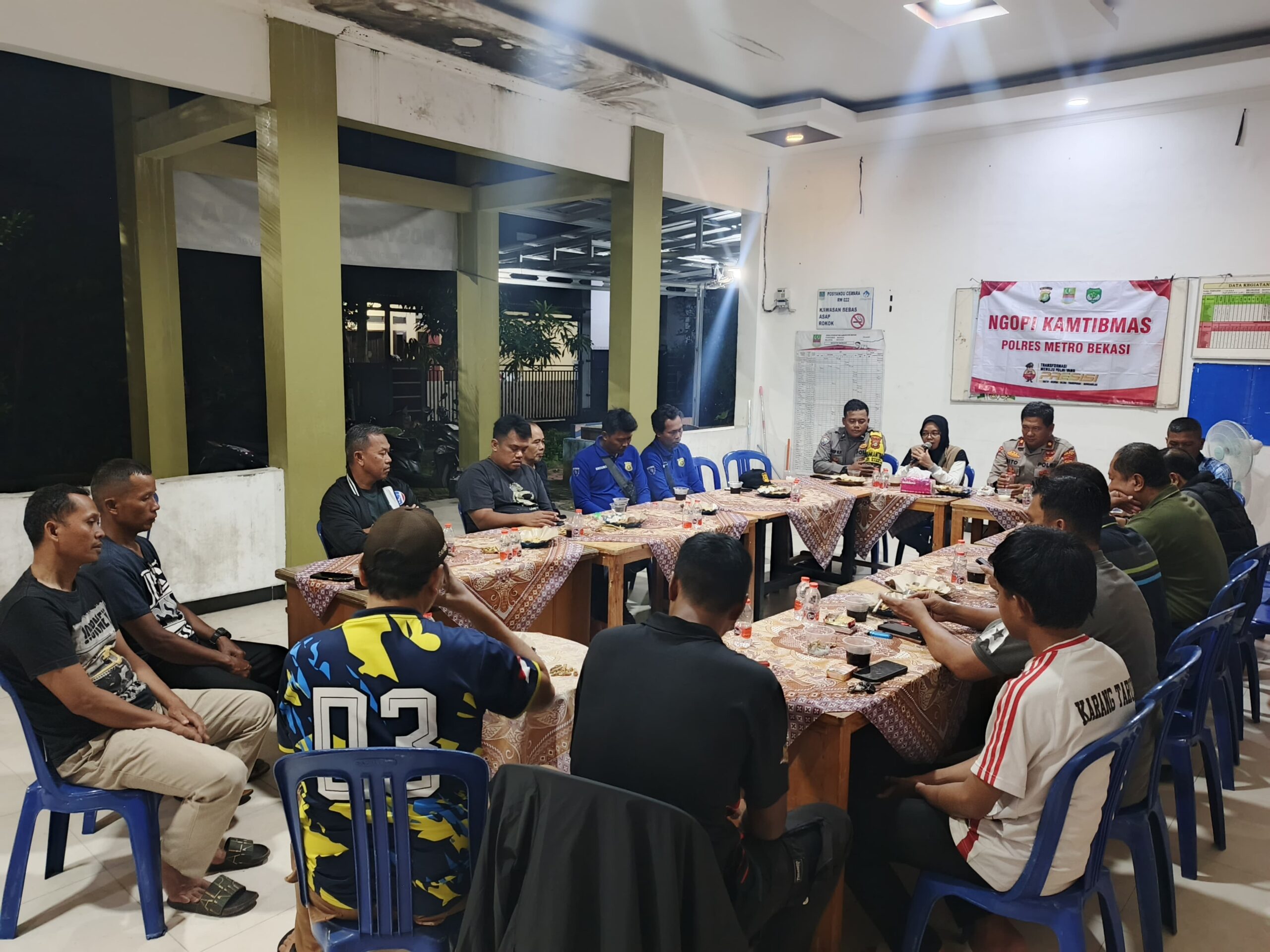 Babelan, | BEKASIHARIINI.COM | – Dalam rangka mempererat silaturahmi serta meningkatkan peran aktif masyarakat dalam menjaga keamanan dan ketertiban, Polsek Babelan melaksanakan kegiatan Ngopi Kamtibmas bersama warga di Pos Satkamling Perum Pondok Ungu Permai Sektor V Blok C RW 22, Kelurahan Bahagia, Kecamatan Babelan, Kabupaten Bekasi, Sabtu malam (24/1/2026).