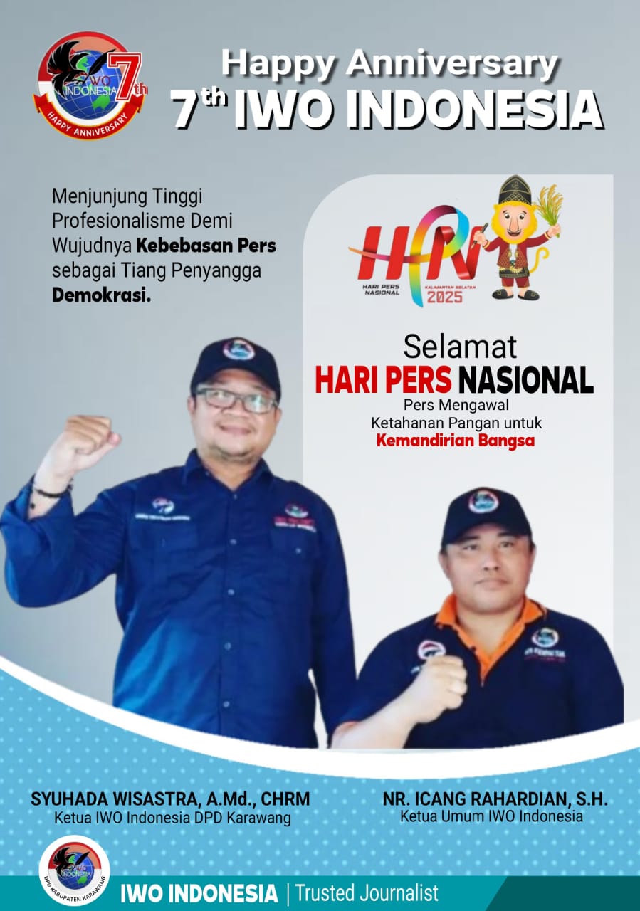Karawang, | BEKASIHARIINI.COM | – Dalam memperingati Hari Pers Nasional ke-25, Ketua Umum Ikatan Wartawan Online (IWO) Indonesia Dewan Pengurus Pusat (DPP), N. R. Icang Rahardian, menekankan pentingnya peran pers sebagai pilar utama demokrasi dan kemajuan informasi di Indonesia. Momen ini sekaligus menjadi refleksi 7 tahun IWO Indonesia dalam menghadapi tantangan dan terus berkembang.