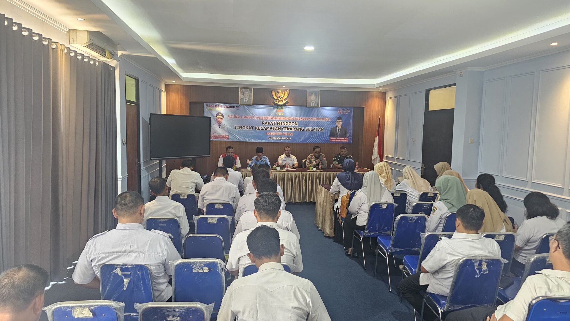 Cikarang Selatan, | BEKASIHARIINI.COM |  – Rapat Minggon tingkat Kecamatan Cikarang Selatan kembali digelar sebagai forum koordinasi rutin lintas instansi, Rabu (22/4/2026). Kegiatan berlangsung di ruang rapat lantai 3 Kantor Kecamatan Cikarang Selatan dengan melibatkan unsur pemerintahan, TNI-Polri, tenaga kesehatan, serta elemen masyarakat.