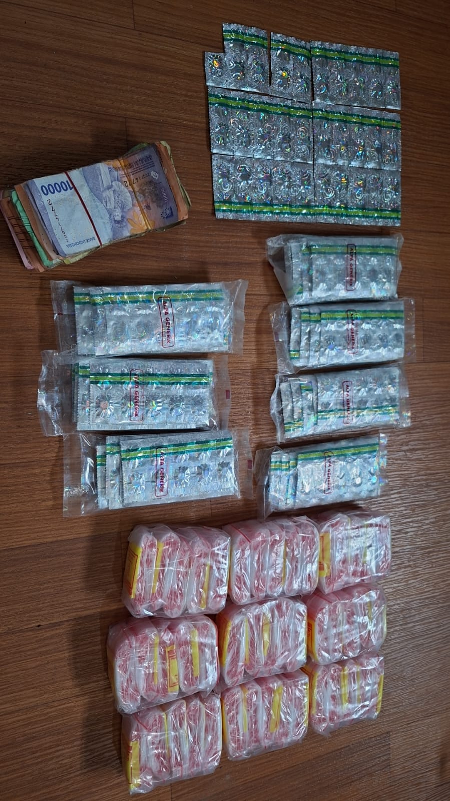 Setelah dilakukan pemeriksaan, petugas menemukan barang bukti berupa 759 butir obat yang diduga Tramadol, uang tunai sebesar Rp1.780.000, satu unit telepon genggam, serta sembilan pack plastik klip bening yang diduga digunakan untuk pengemasan.