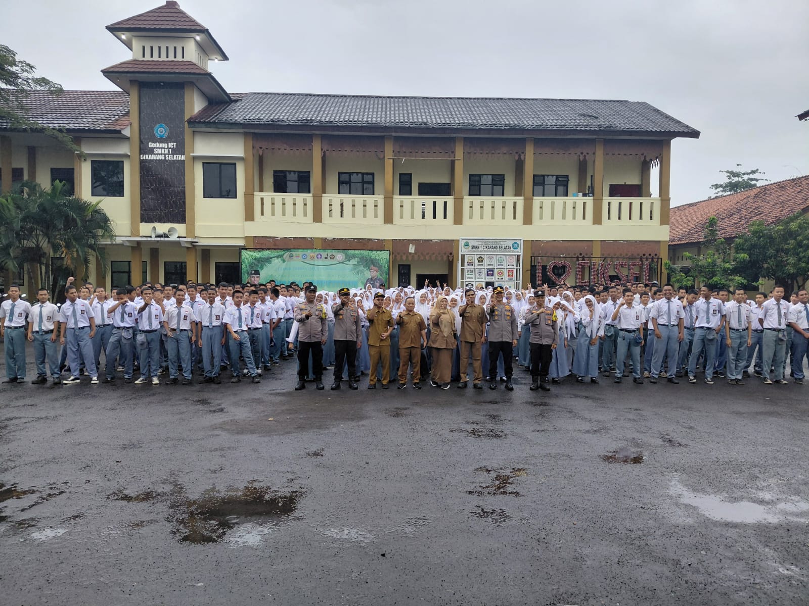 Kegiatan Kapolres Metro Bekasi KBP Sumarni, S.I.K., S.H., M.H., diwakili oleh Kasat Binmas KOMPOL Judika Sinaga, S.H., M.H., didampingi Kapolsek Cikarang Selatan AKP Erwin Setiawan, S.I.K., M.H., Kanit Binmas AKP Suprihanto, serta jajaran Bhabinkamtibmas. Turut hadir Kepala SMKN 1 Cikarang Selatan Cucu Sudrajat, S.Pd., M.M., para guru, serta seluruh siswa.