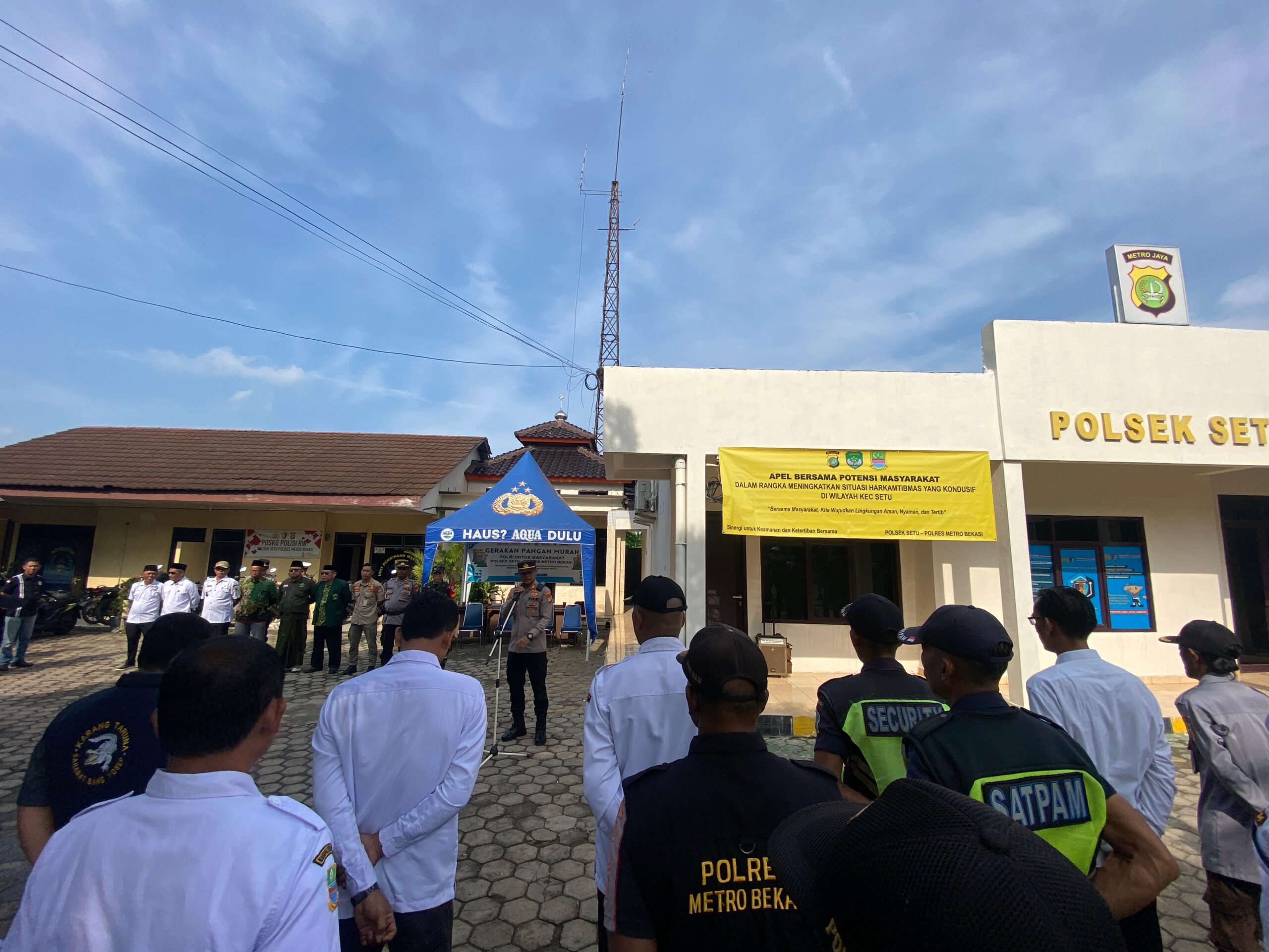 Apel ini melibatkan 101 personel gabungan yang terdiri dari unsur TNI–Polri, Pol PP, Linmas, Pokdar Kamtibmas, Security, Karang Taruna, FKPPI, Banser, BPPKB, GRIB, Gibas, Senkom, komunitas ojek online, serta elemen masyarakat lainnya. Hadir pula Danramil Setu Kapt Inf Ruhyat, Wakapolsek Setu IPTU Nrimo, para Kanit Polsek Setu, tokoh agama, tokoh masyarakat, dan perwakilan BPD se-Kecamatan Setu.