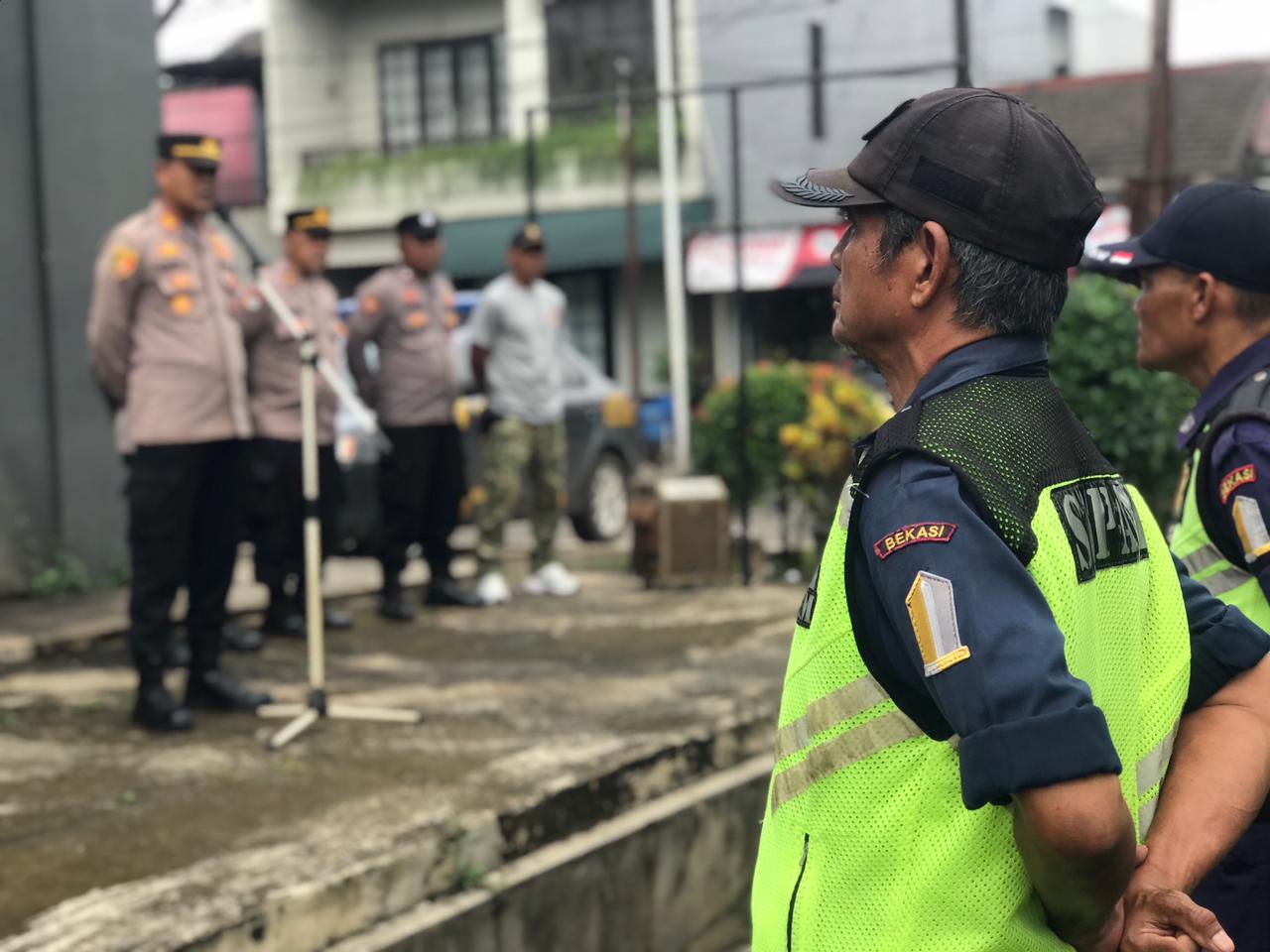 Dalam arahannya, Kapolsek Setu menekankan pentingnya kesiapsiagaan dan peran aktif satuan pengamanan sebagai garda terdepan dalam menjaga lingkungan permukiman.