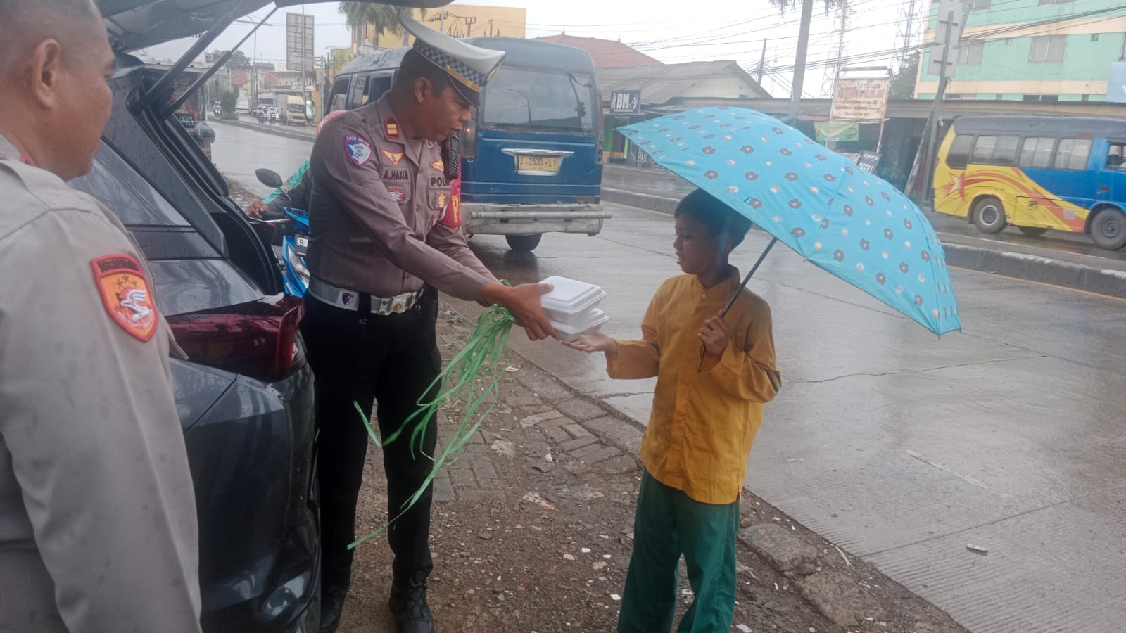 Dalam kegiatan tersebut, personel Polsek Cikarang Barat membagikan sebanyak 75 nasi box kepada masyarakat yang membutuhkan, di antaranya pengemudi ojek, calon penumpang bus, serta pedagang kaki lima yang berada di sekitar lokasi.